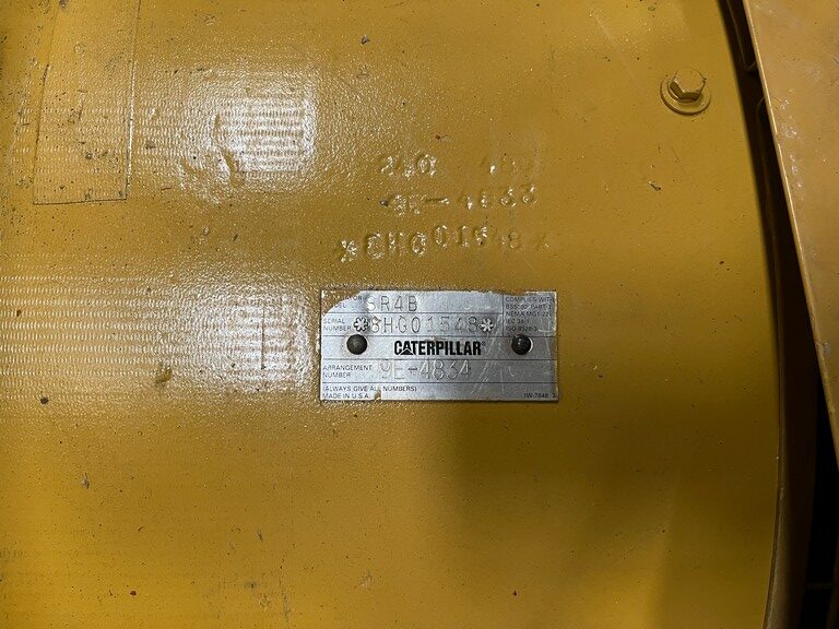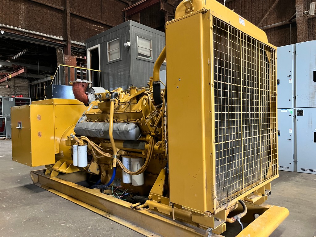 Low Hour CAT 3412C Generator Set; 1998 Model – 936 Original Hours; 500kW Standby Rated; 455kW Prime Power; 480/277V; Open Skid Mount; Digital Control Panel; 800A Breaker; Engine Driven Radiator; Jacket Water Heater; Charging Alternator; Electric Starter; Load Tested and Ready to Ship