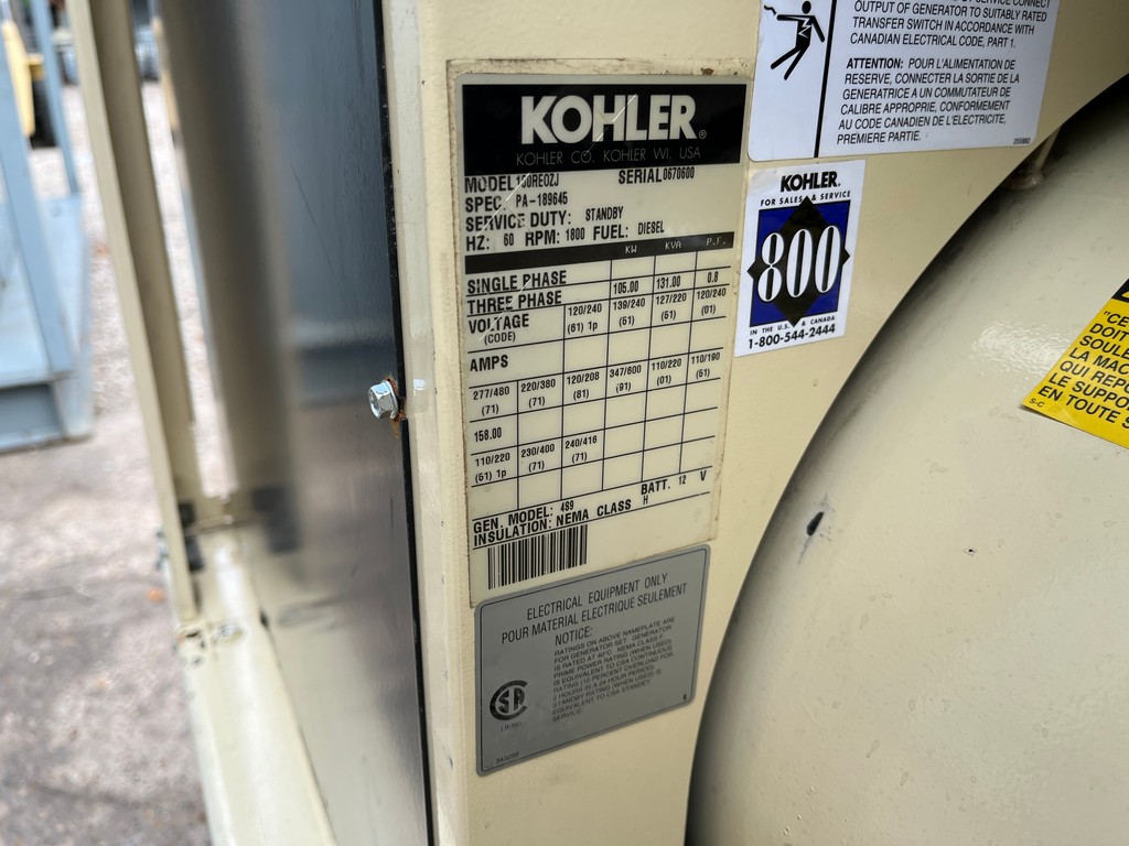 Used Kohler 100REOZJ Generator Set