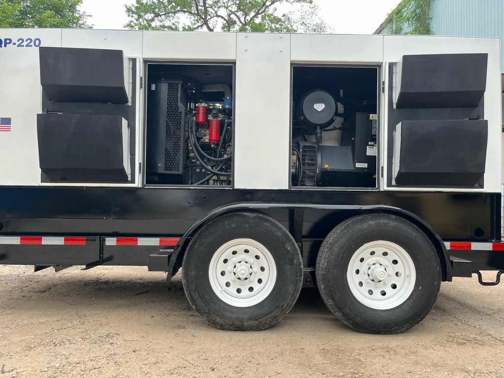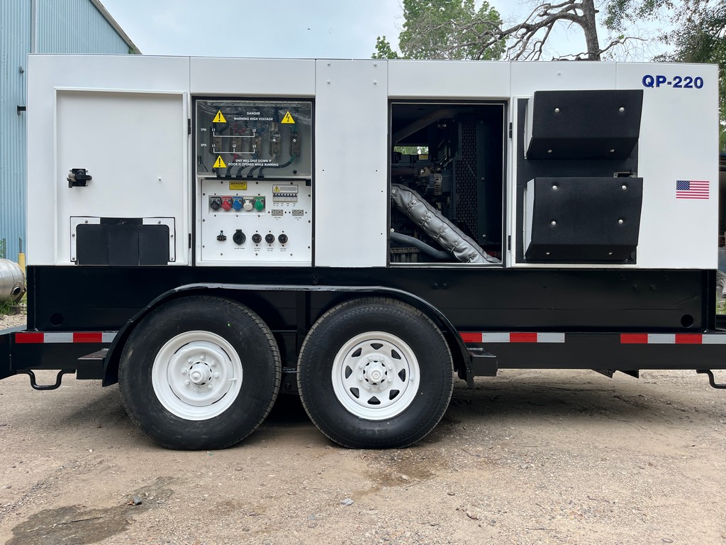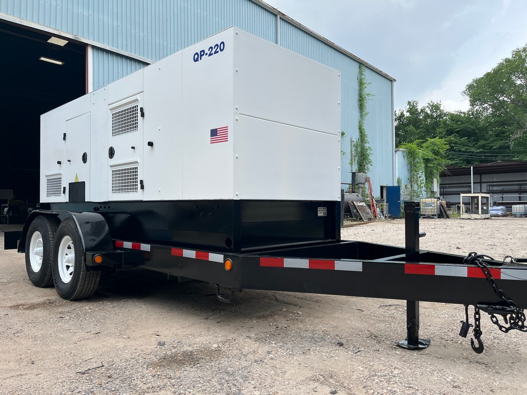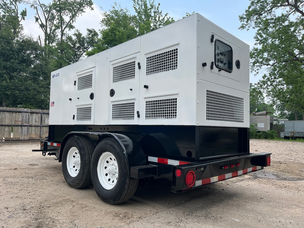 Used Hanco / SWP QP220 Generator Set; 2014 Model – 6037 Hours; 175kW Standby Rated; Multi-Voltage; Sound Attenuated Enclosure; Base Fuel Tank; Trailer Mounted; Digital Controller; Tier 3 Emissions; Heavy Duty Rental Style Packaging; Cleaned – Serviced – Freshly Painted – Load Tested