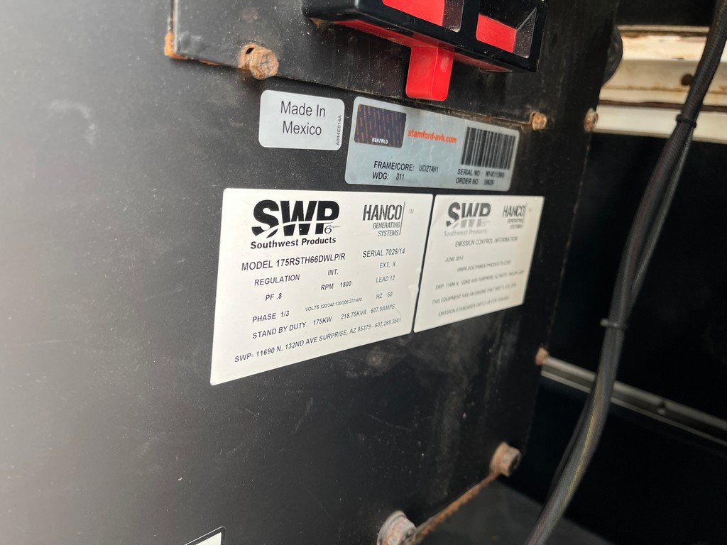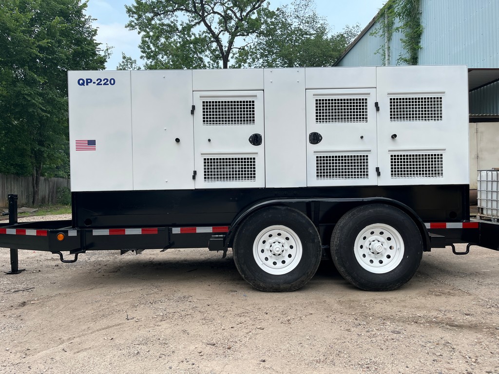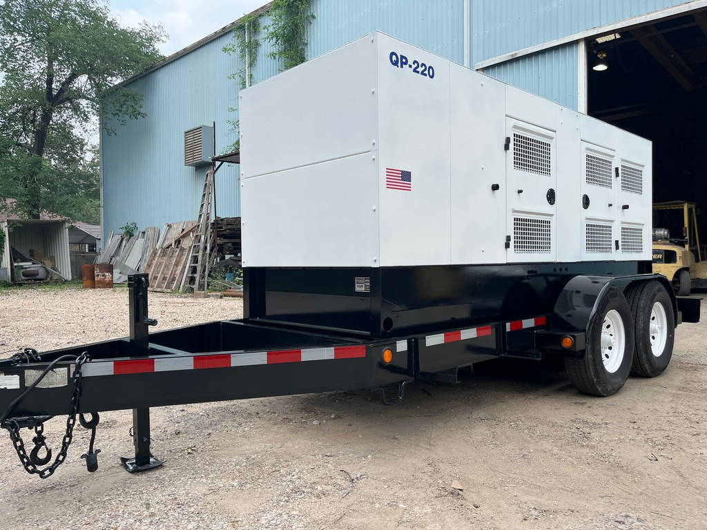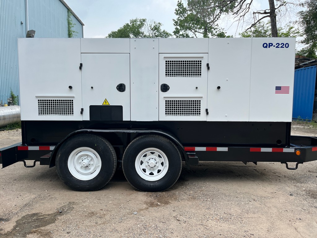 Used Hanco / SWP QP220 Generator Set; 2014 Model – 6037 Hours; 175kW Standby Rated; Multi-Voltage; Sound Attenuated Enclosure; Base Fuel Tank; Trailer Mounted; Digital Controller; Tier 3 Emissions; Heavy Duty Rental Style Packaging; Cleaned – Serviced – Freshly Painted – Load Tested